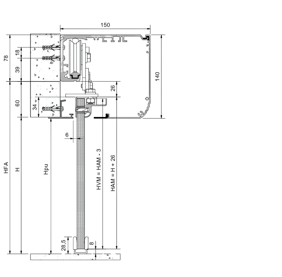 Hpu = 1900 – 2970 mm