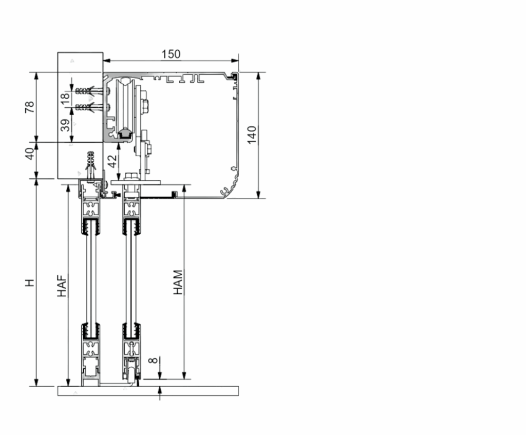 Vp = 1600 – 6500 mm H = 1900 – 3000 mm Vpu = 800 – 3000 mm Hpu = 1900 – 3000 mm LTT = 1680 – 7000 mm Sd = 50 (min)