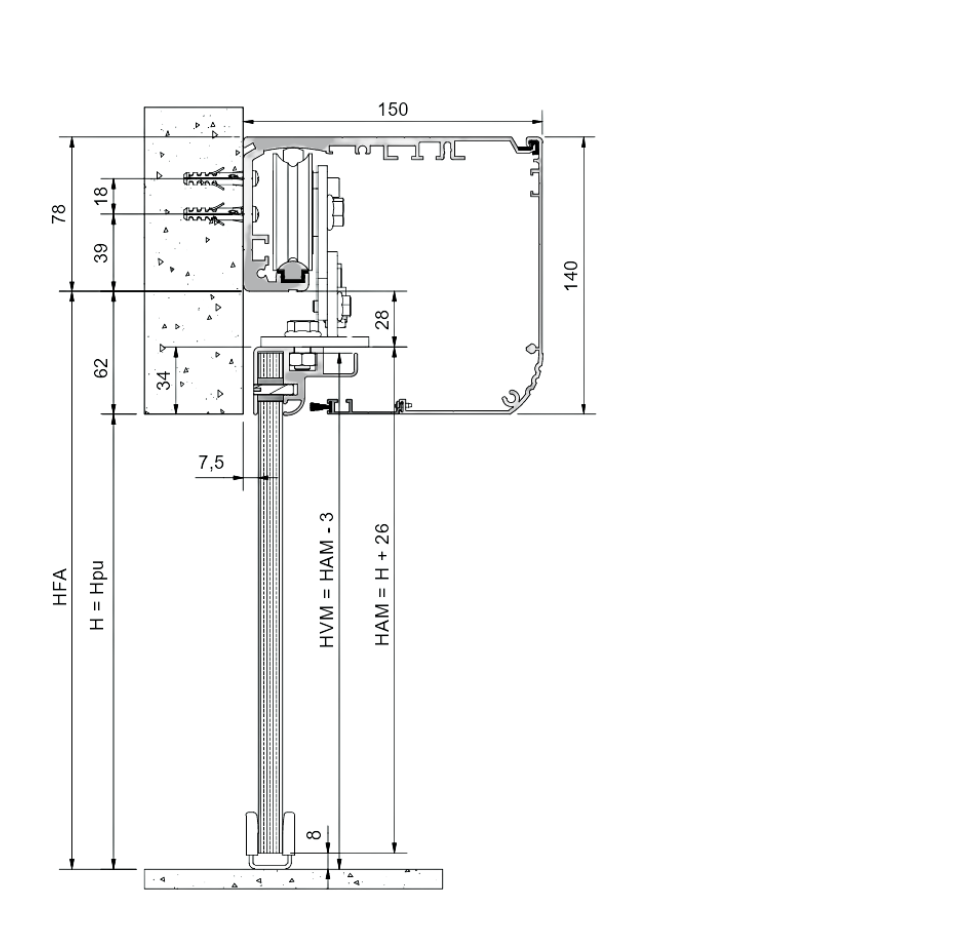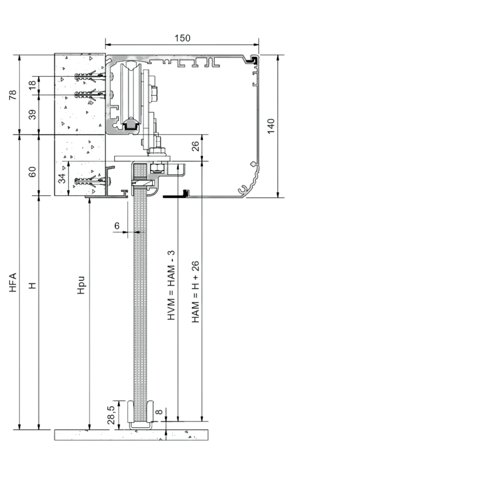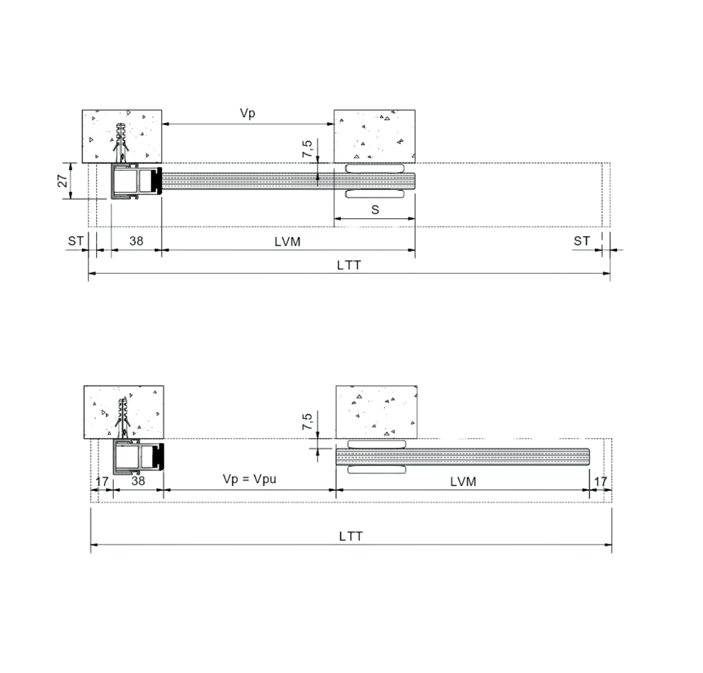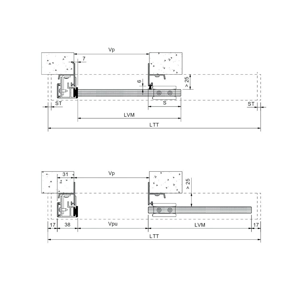 To the wall, between the walls, under the ceiling, with top installation screen, in the wall